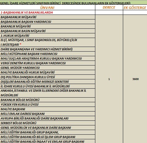 Bu nedenle memurlar bulundukları unvanların birinci derece.